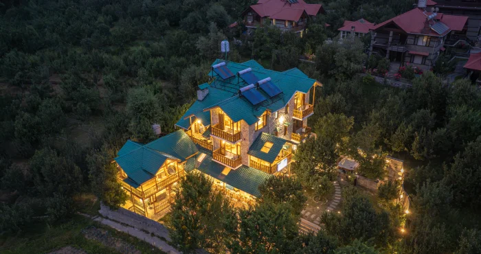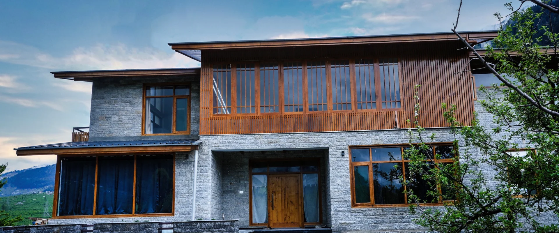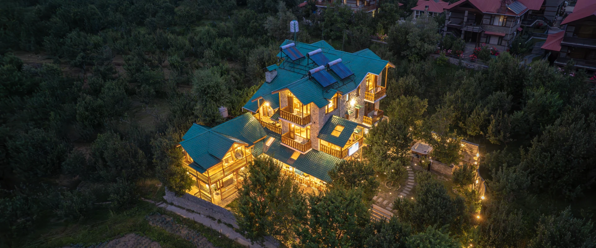 Our Kaizen Villa is located 20 minutes before Manali mall road, away from the commotion and traffic. Nestled amidst dense apple orchards, our 8-bedroom villa offers an escape to a tranquil mountain retreat.