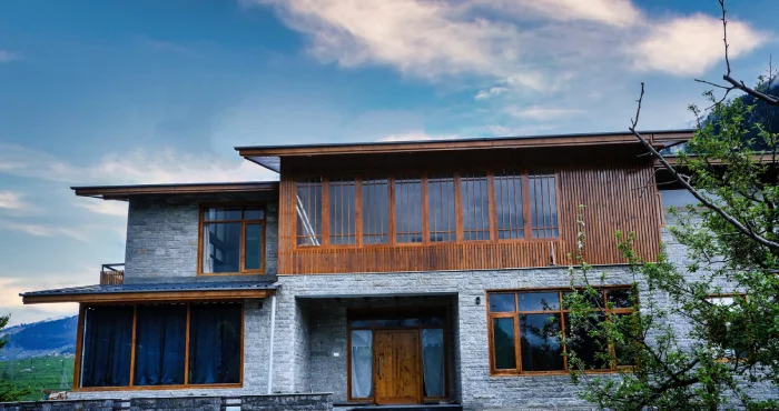 Kaizen Villa – Karjan features an 8-seater outdoor jacuzzi and several cozy spaces ideal for larger groups. Kaizen Karjan Villa, located just 20 minutes before Manali Mall Road, is a peaceful retreat nestled in lush apple orchards—away from the city’s hustle.