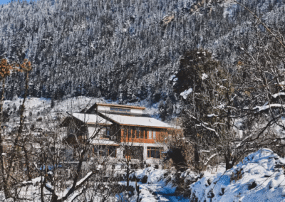 The space Perfectly located 20 minutes before Manali Mall Road, in a quaint town of Gazan village, South Manali. Our guest bedrooms are led by a flight of cantilever stairs on the first and second floor. On first floor, we have 5 bedrooms and 1 on the second floor.