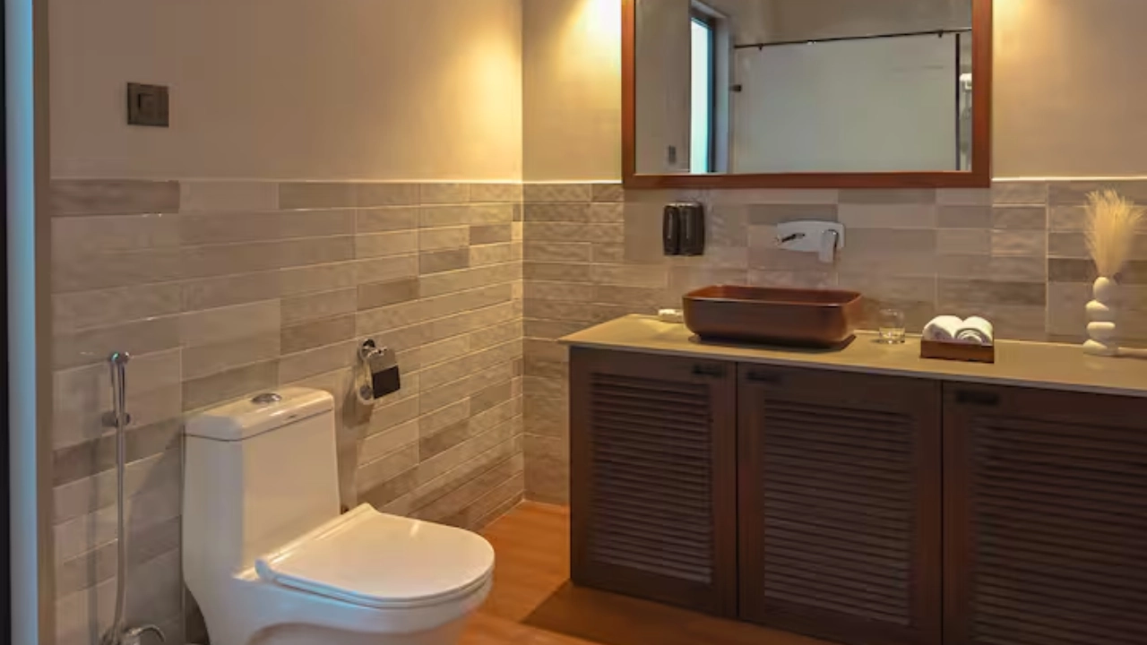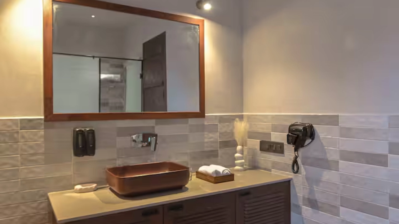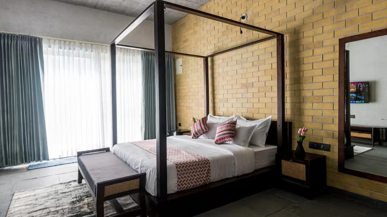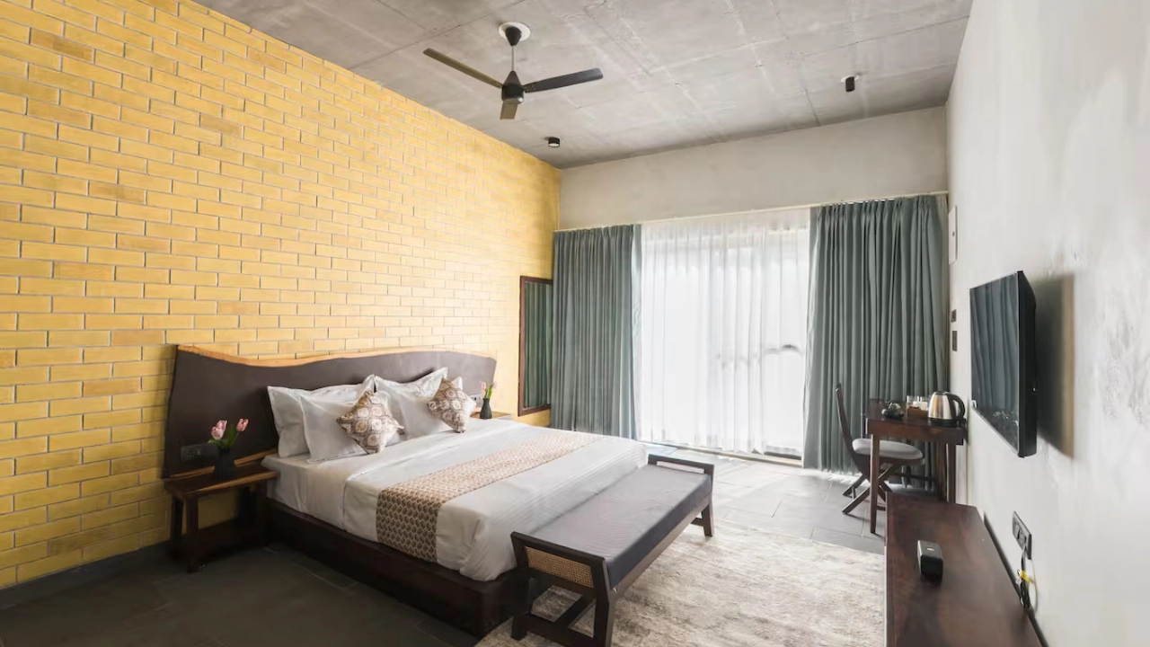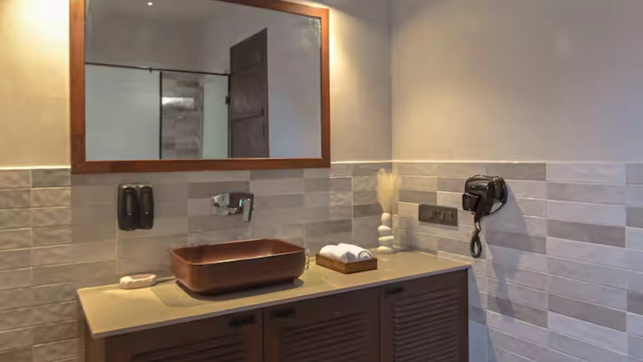 This spacious 2-BR villa is designed to offer privacy & earthy luxury. Both bedrooms feature a king-size bed, soft linens and handcrafted woodwork. Large windows allow natural light, creating a bright & airy atmosphere. Each bedroom includes an attached bathroom. One bathroom features a large soaking bathtub with a separate shower area. The highlight of the unit is a private plunge pool, which the villa opens directly into. This combo is perfect for a group of 4.