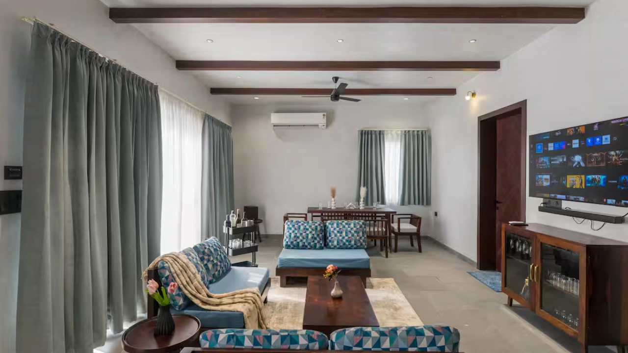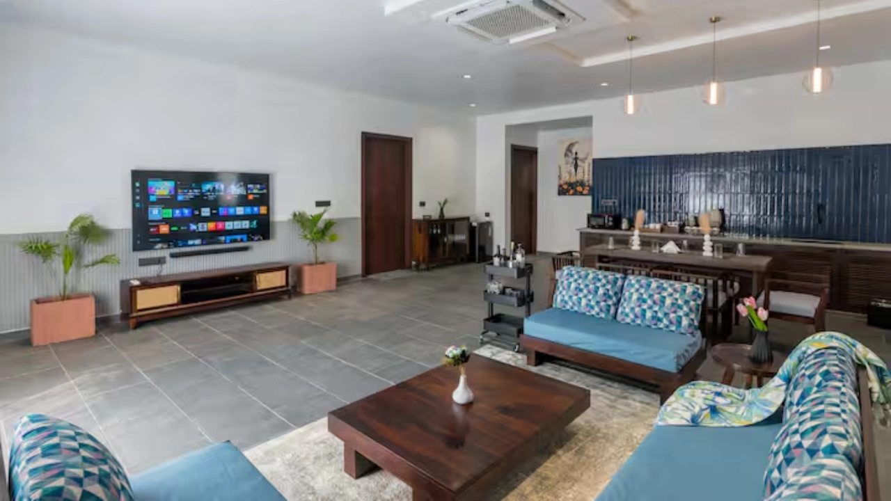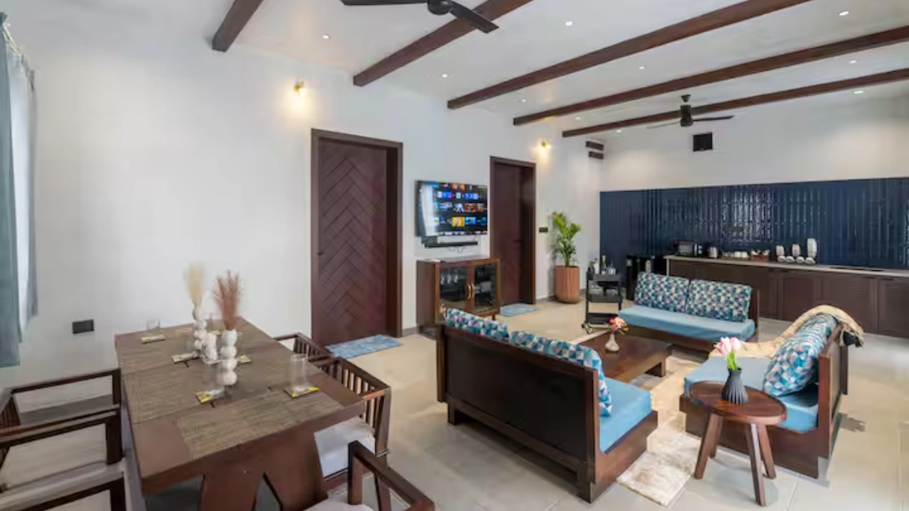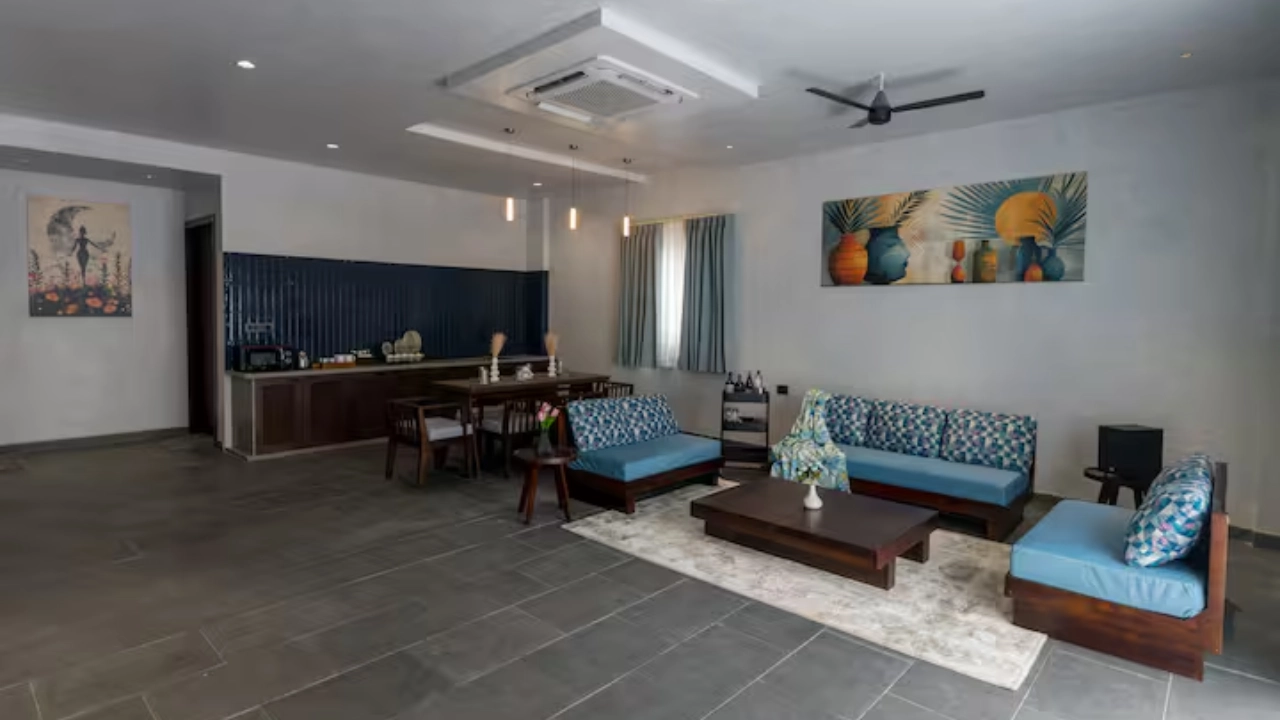 Perfect for a group of 6, our 3-BR villa has 3 bedrooms with king-size beds along with attached bathrooms. It also includes 2 outdoor bathtubs for an open-air resort-like bathing experience along with a separate shower area. It also features a huge living area with adequate sofa seating, smart TV, a sound-bar, a dining space and a kitchenette equipped with a microwave and a bar trolley. Your private pool with gazebo seating offers the perfect spot for a summer dip in complete privacy.