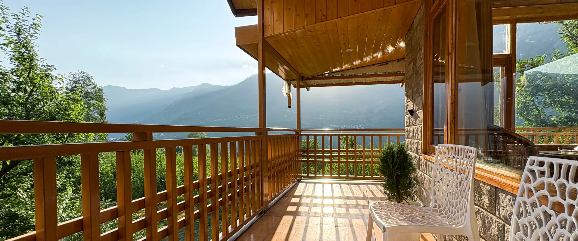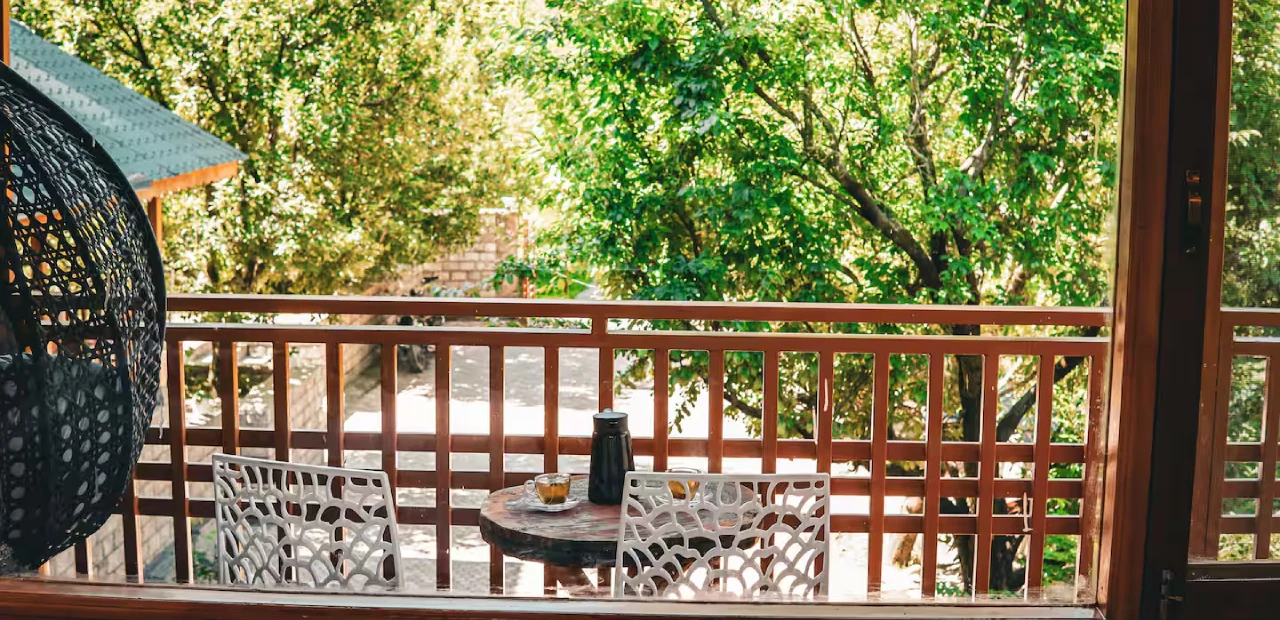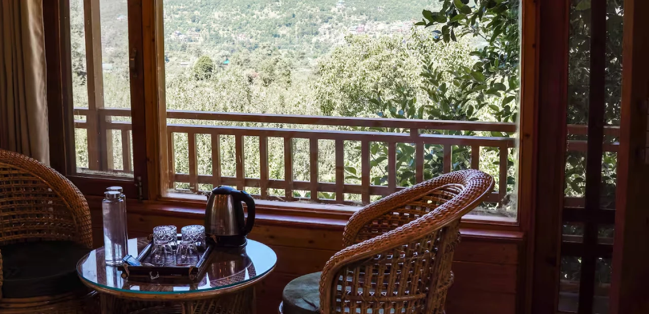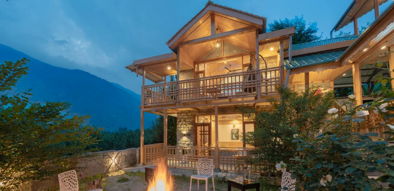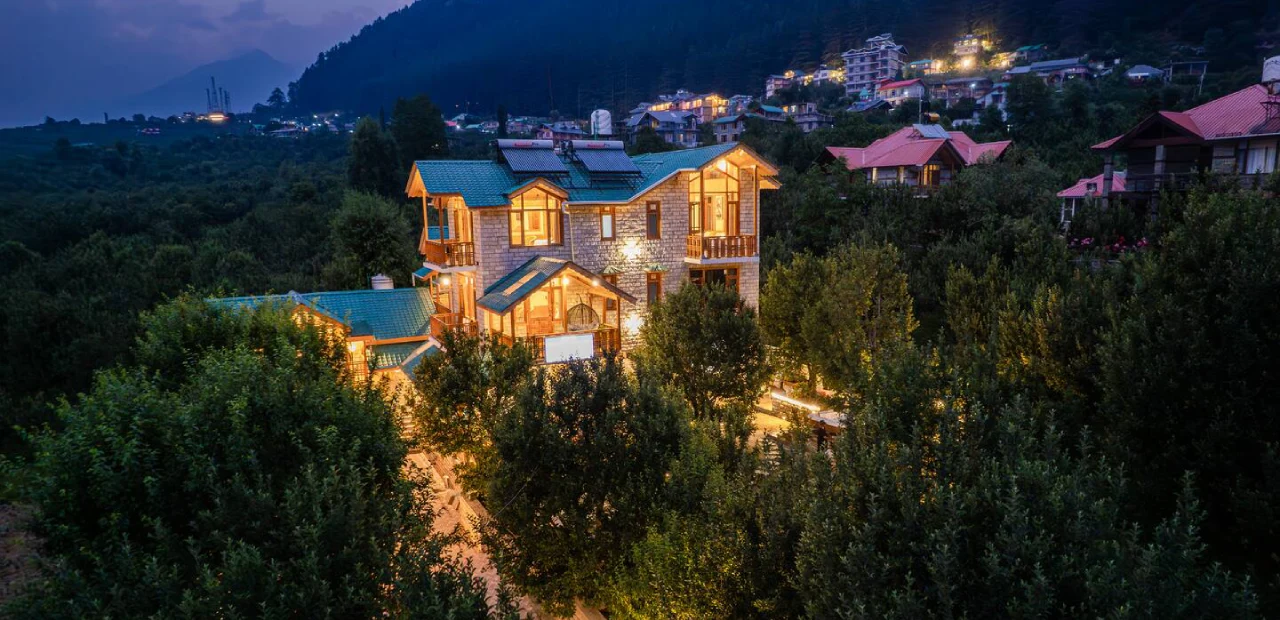 Kaizen Surrounded by lush apple orchards, this 8-bedroom retreat combines old-world charm with warm wooden and stone interiors, reflecting the essence of a traditional Himachali cottage.