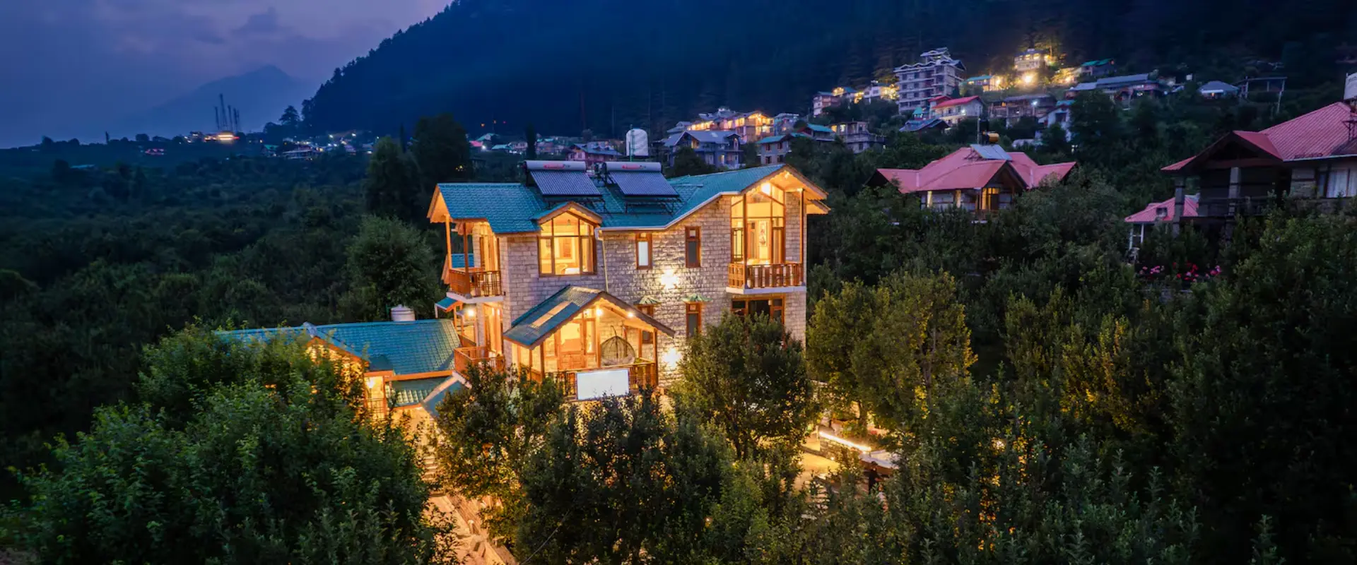 Surrounded by dense apple orchards, our 8-bedroom villa offers a peaceful mountain retreat infused with old-world charm. Featuring warm wooden and stone interiors inspired by traditional Himachali cottages, it also includes a 6-seater outdoor Jacuzzi—adding a luxurious touch to your nature-filled, unforgettable stay.