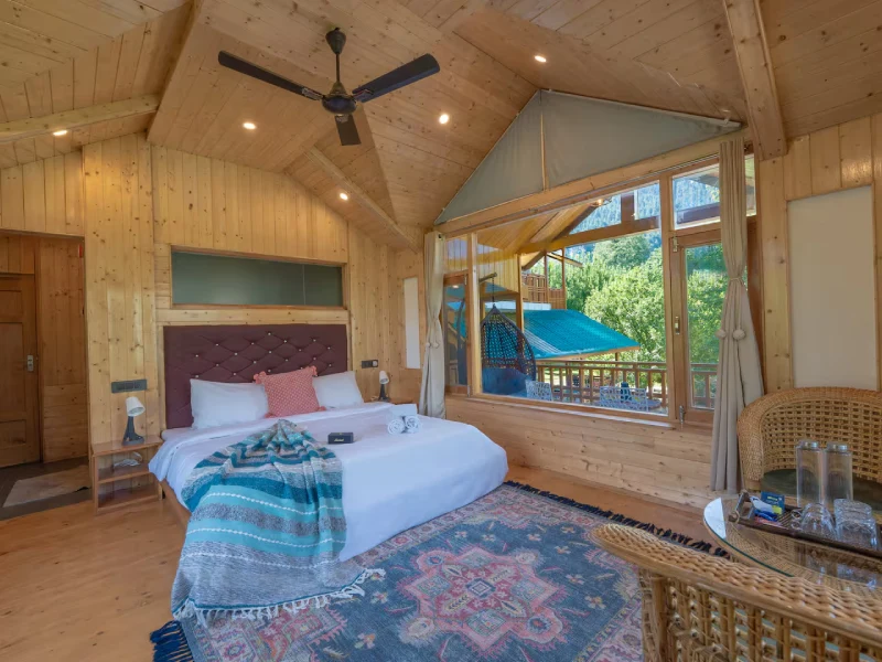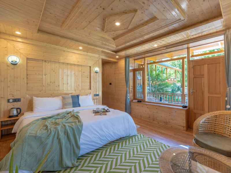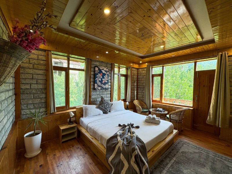 Surrounded by dense apple orchards, our 8-bedroom villa offers a peaceful mountain retreat infused with old-world charm. Featuring warm wooden and stone interiors inspired by traditional Himachali cottages, it also includes a 6-seater outdoor Jacuzzi—adding a luxurious touch to your nature-filled, unforgettable stay.